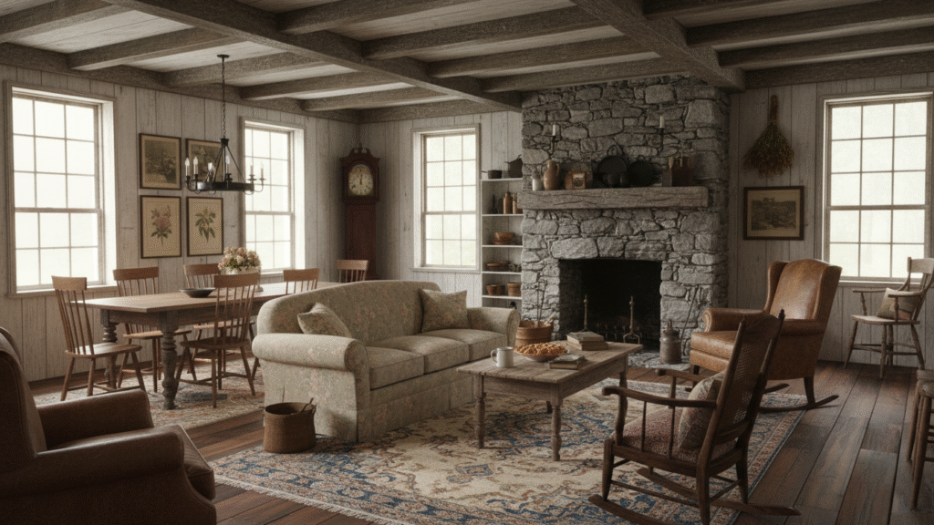Farmhouse Style Interior Design began with necessity. Early American farmhouses used local wood, stone, and handmade pieces. Over time, those practical choices formed a visual language. That language still shapes today’s Traditional European style and American rural homes.