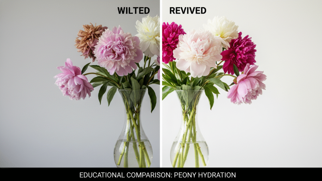 I’ve rescued plenty with the warm water trick: a quick 30-second dip, recut stems, and voilà — stubborn peony buds slowly bloom. Sometimes I even roll the buds gently in my palms — weird, but effective. A few small actions, and suddenly your peony blooms look happy again.