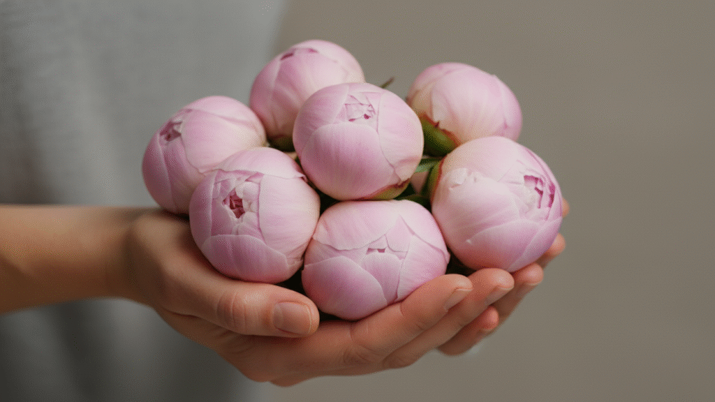 I’ll be honest — the difference between a peony that lasts and one that doesn’t starts before it even reaches your vase. Every bloom begins as a tight peony bud, gradually softening into the marshmallow stage — that perfect sweet spot where you want to snip them. If you wait too long until the petals fully open, well… your bouquet’s glory days are shorter than you hoped.