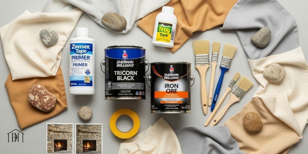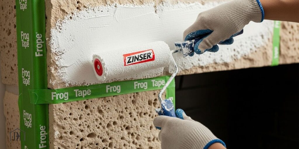 Having the right materials makes the process smooth. Start with a TSP cleaner, which removes soot and dirt effectively. You’ll need a Zinsser primer (preferably Zinsser water-based primer) for sealing the porous surface. A Frog Tape painters tape ensures clean lines when you tape off the fireplace area.