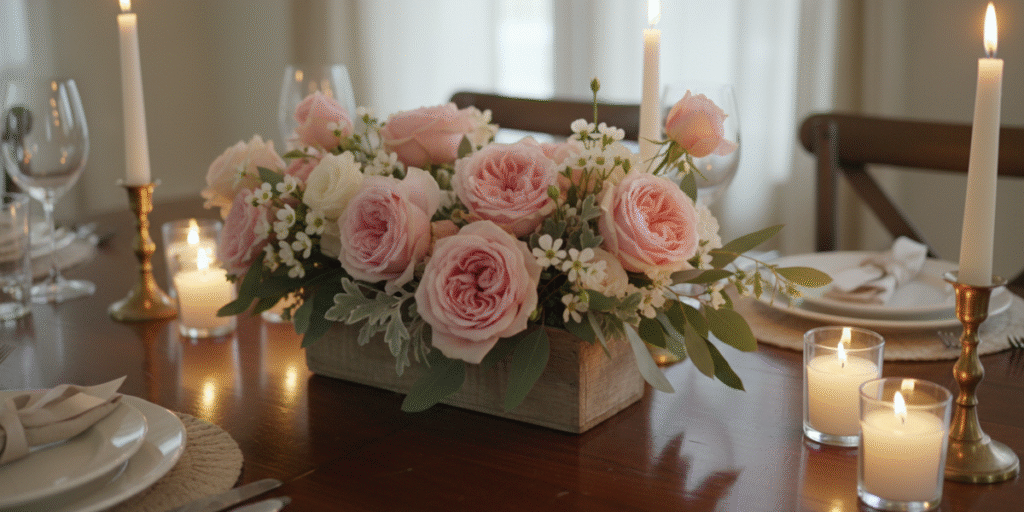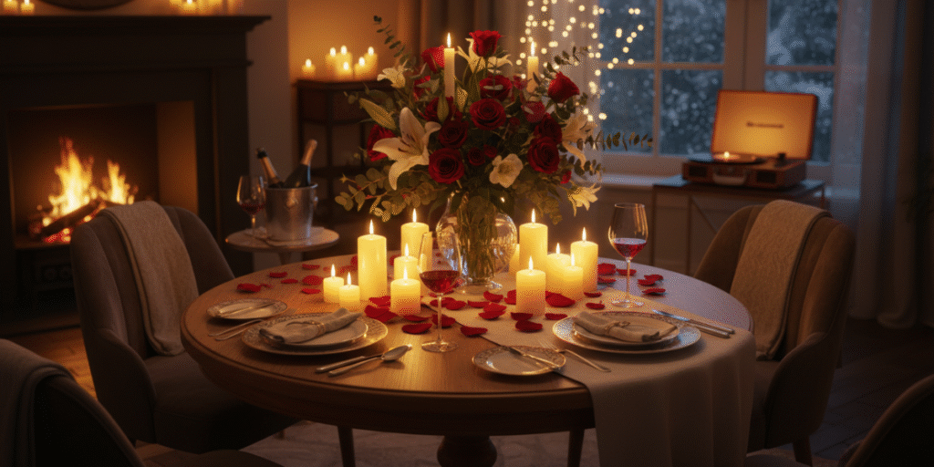 A romantic dinner table isn’t just decoration; it’s storytelling. Every candle, every fold of linen, whispers: you matter to me. When you put effort into the small things — the lighting, the music, the pink roses — it transforms the evening.