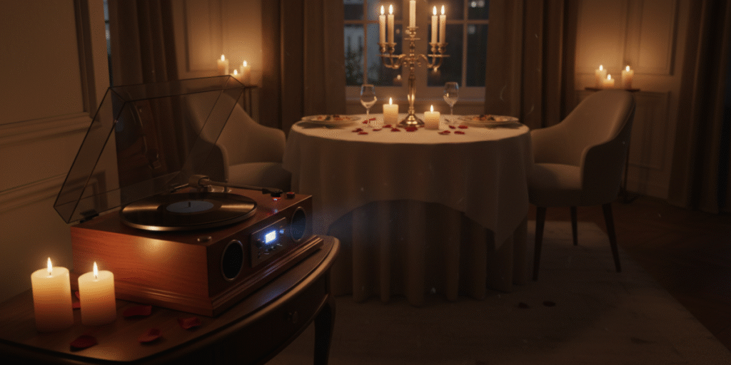 I once played an old Frank Sinatra record for a date — the vinyl crackle alone felt romantic. Architectural Digest recommends soft jazz or acoustic playlists; they work wonders. Just… don’t overthink it. You’ll know when it feels right.